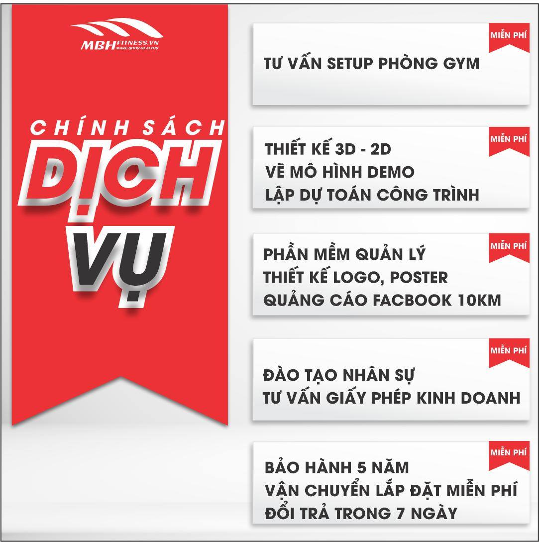 Khi setup phòng gym, T95 Gym Fitness đã lựa chọn các chính sách và dịch vụ hỗ trợ toàn diện từ MBH Việt Nam, bao gồm:
