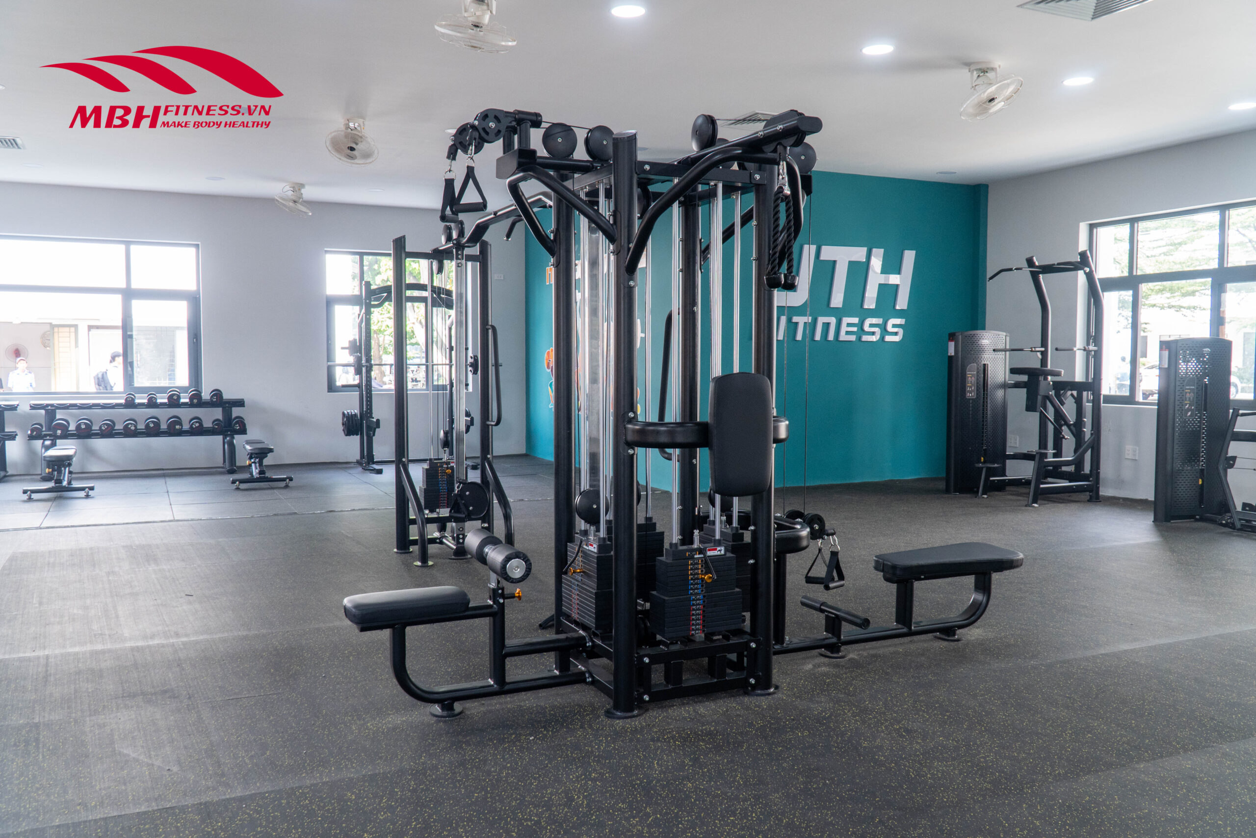 Dàn Tập Đa Năng: Trang bị dàn đa năng 5 khối JL 7345 và các máy hỗ trợ chuyên sâu cho từng nhóm cơ như tập vai, tập ngực, tập tay, tập xô.